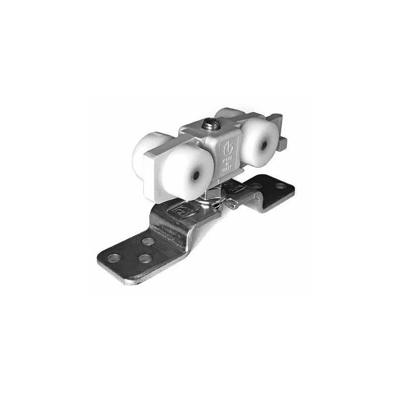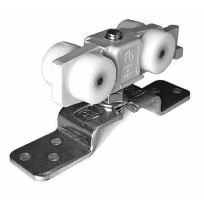 CONFEZIONE CON COPPIA CARRELLI, COPPIA PARACOLPI E PATTINO GUIDA PER PORTE APPESE PORTATA 80 kg