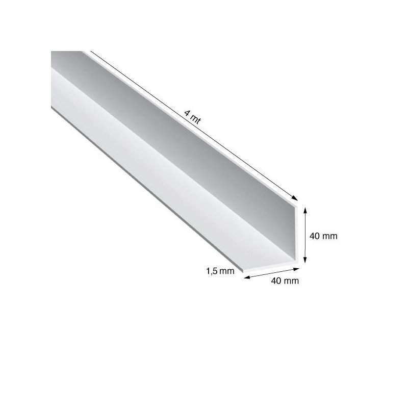 ANGOLARE LATI UGUALI IN ALLUMINIO, LEGA 6060/T5, MISURA 40x40x1,5 mm, FINITURA VERNICIATA BIANCO RAL 9010, LUNGHEZZA PROFILO METRI 4