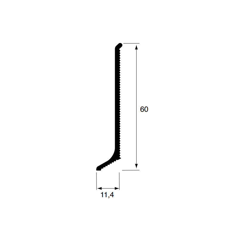 BATTISCOPA IN ALLUMINIO, LEGA 6060/T5, MISURA H 60 mm, FINITURA ANODIZZATA COLOR ARGENTO, LUNGHEZZA PROFILO METRI 2
