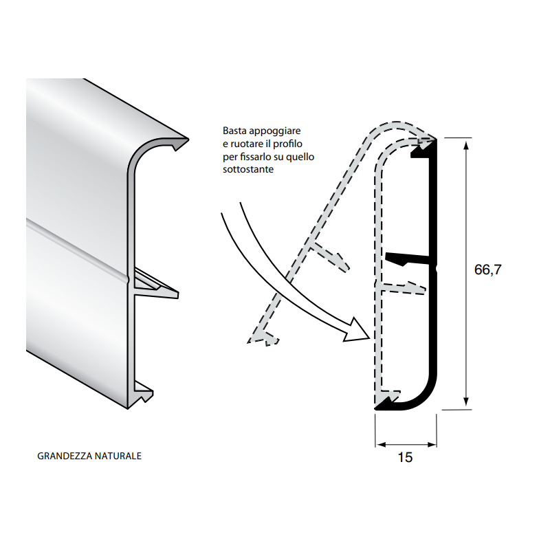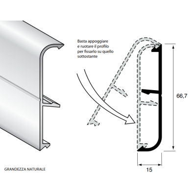 PORTACAVI IN ALLUMINIO, LEGA 6060/T5, MISURA H 66,7 mm, FINITURA ANODIZZATA COLOR ARGENTO, LUNGHEZZA PROFILO METRI 4