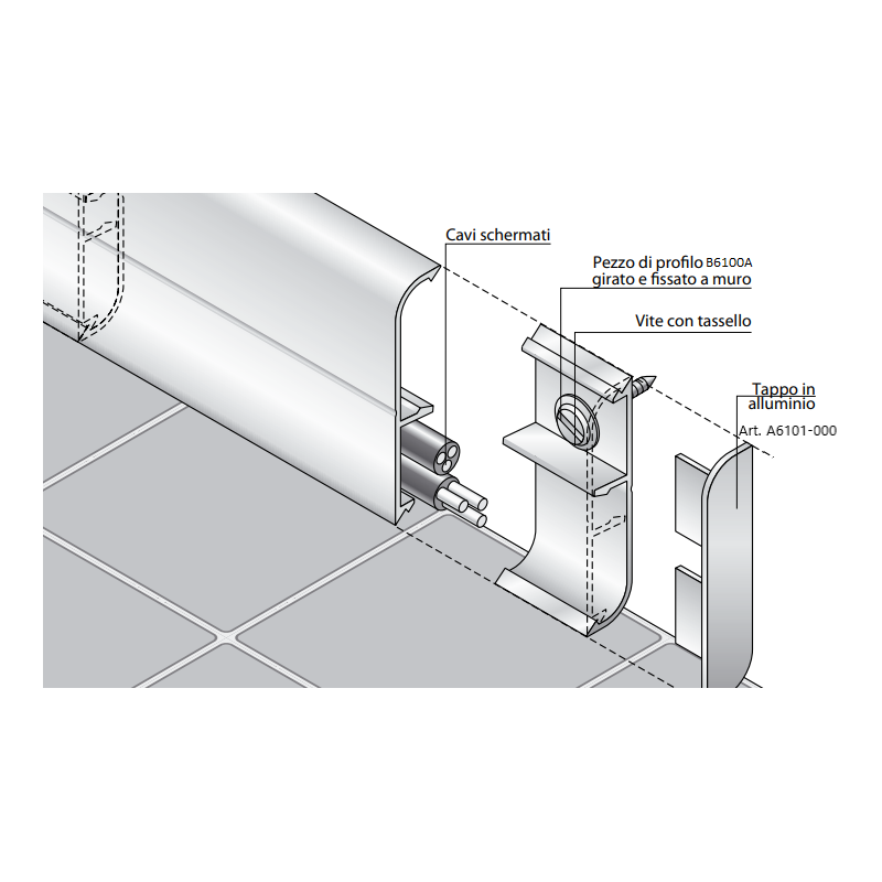 COPPIA TAPPI ALLUMINIO ANODIZZATO ARGENTO PER BATTISCOPA B6100 ALTEZZA 66,7mm