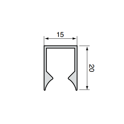 FERMAVETRO IN ALLUMINIO, LEGA 6060/T5, MISURA 15 mm, FINITURA ANODIZZATA COLOR ARGENTO, LUNGHEZZA PROFILO METRI 2