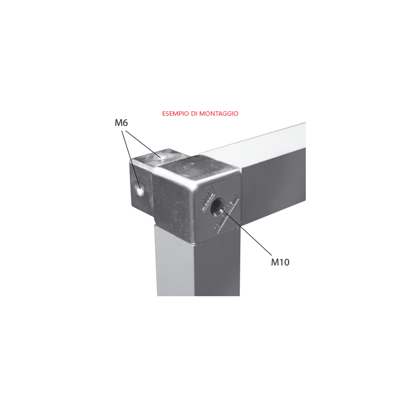 GIUNTO A 2 VIE IN ABS NERO 20 mm PER TUBO QUADRO IN ALLUMINIO 20x1,3 mm