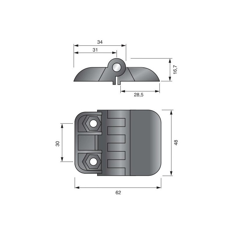 GIUNTO A 2 VIE IN ZAMA PER TUBO QUADRO IN ALLUMINIO 15x1 mm