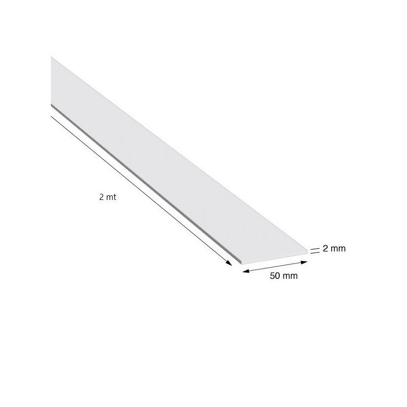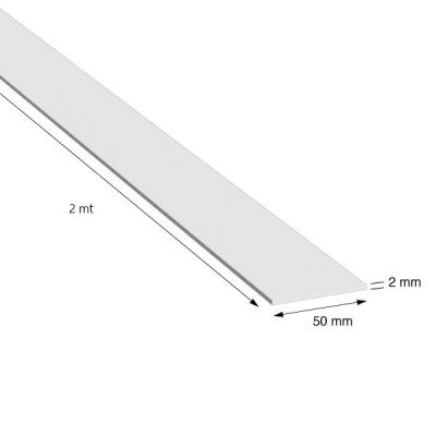 PIATTO IN ALLUMINIO, LEGA 6060/T5, MISURA 50x2,0 mm, FINITURA VERNICIATA BIANCO RAL 9010, LUNGHEZZA PROFILO METRI 2