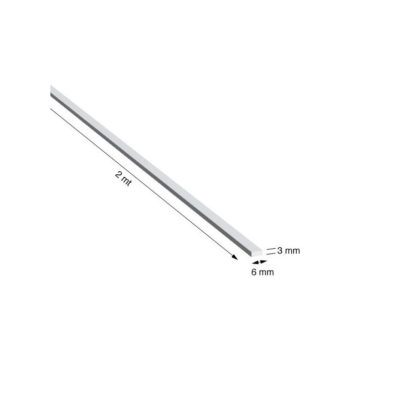 PIATTO IN ALLUMINIO, LEGA 6060/T5, MISURA 6x3,0 mm, FINITURA ANODIZZATA COLOR ARGENTO, LUNGHEZZA PROFILO METRI 2