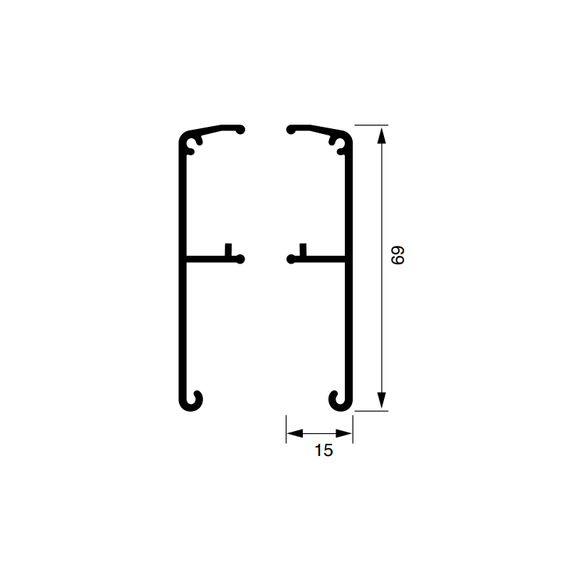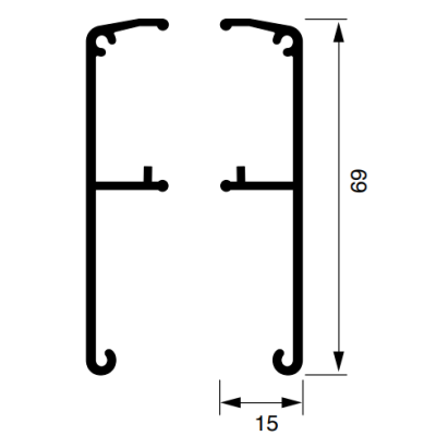 PROFILO PER PORTE SOSPESE IN ALLUMINIO, LEGA 6060/T5, AN.ARGENTO, LUNGHEZZA PROFILO METRI 3