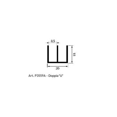 PROFILO A U PER PANNELLI IN ALLUMINIO, LEGA 6060/T5, MISURA 20x50 mm, FINITURA ANODIZZATA COLOR ARGENTO, LUNGHEZZA PROFILO METRI 3