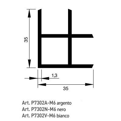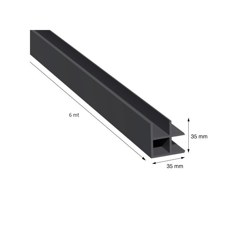 PROFILO A U PER PANNELLI IN ALLUMINIO, LEGA 6060/T5, MISURA 35x35 mm, FINITURA ANODIZZATA COLORE NERO, LUNGHEZZA PROFILO METRI 6