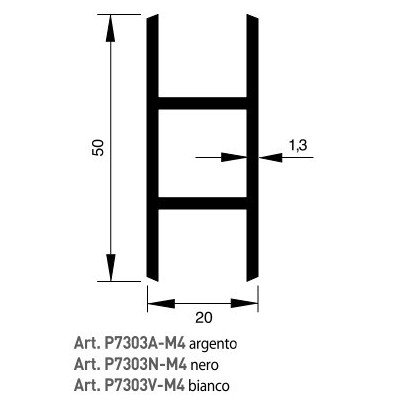 PROFILO A U PER PANNELLI IN ALLUMINIO, LEGA 6060/T5, MISURA 20x35 mm, FINITURA VERNICIATA BIANCO RAL 9010, LUNGHEZZA PROFILO METRI 4