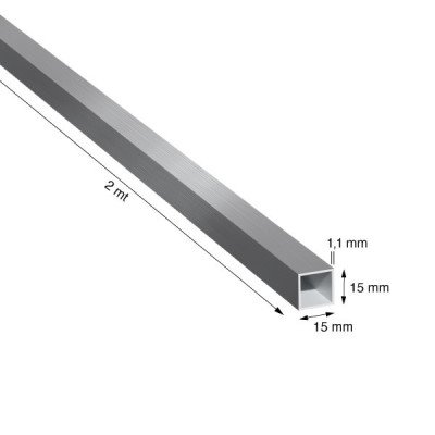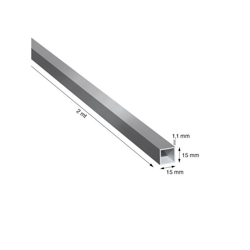 TUBO QUADRO IN ALLUMINIO, LEGA 6060/T5, MISURA 15x1,1 mm, FINITURA GREZZA, LUNGHEZZA PROFILO METRI 2