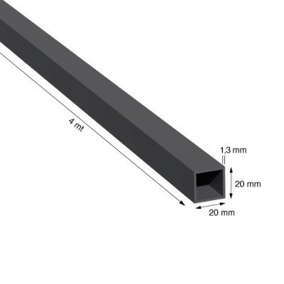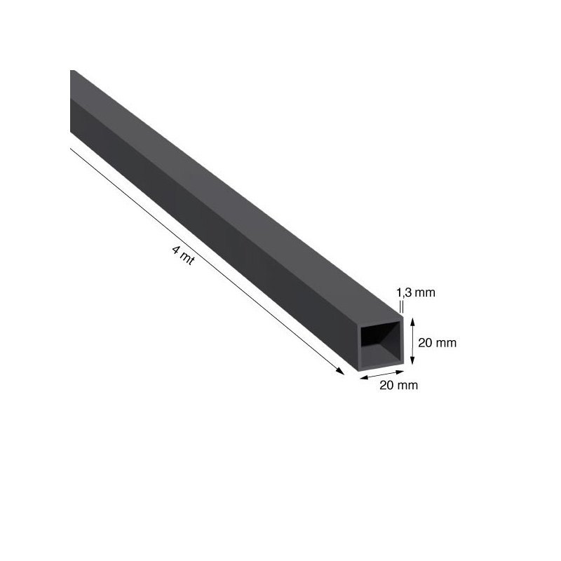TUBO QUADRO IN ALLUMINIO, LEGA 6060/T5, MISURA 20x1,3 mm, FINITURA ANODIZZATA COLORE NERO, LUNGHEZZA PROFILO METRI 4