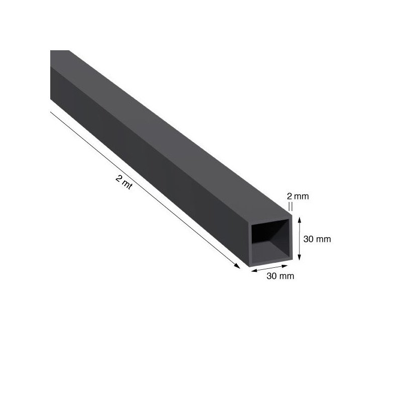 TUBO QUADRO IN ALLUMINIO, LEGA 6060/T5, MISURA 30x2,0 mm, FINITURA GREZZA, LUNGHEZZA PROFILO METRI 6