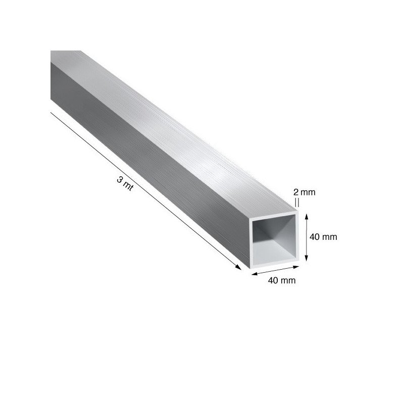 TUBO QUADRO IN ALLUMINIO, LEGA 6060/T5, MISURA 50x1,5 mm, FINITURA ANODIZZATA COLOR ARGENTO, LUNGHEZZA PROFILO METRI 2,5