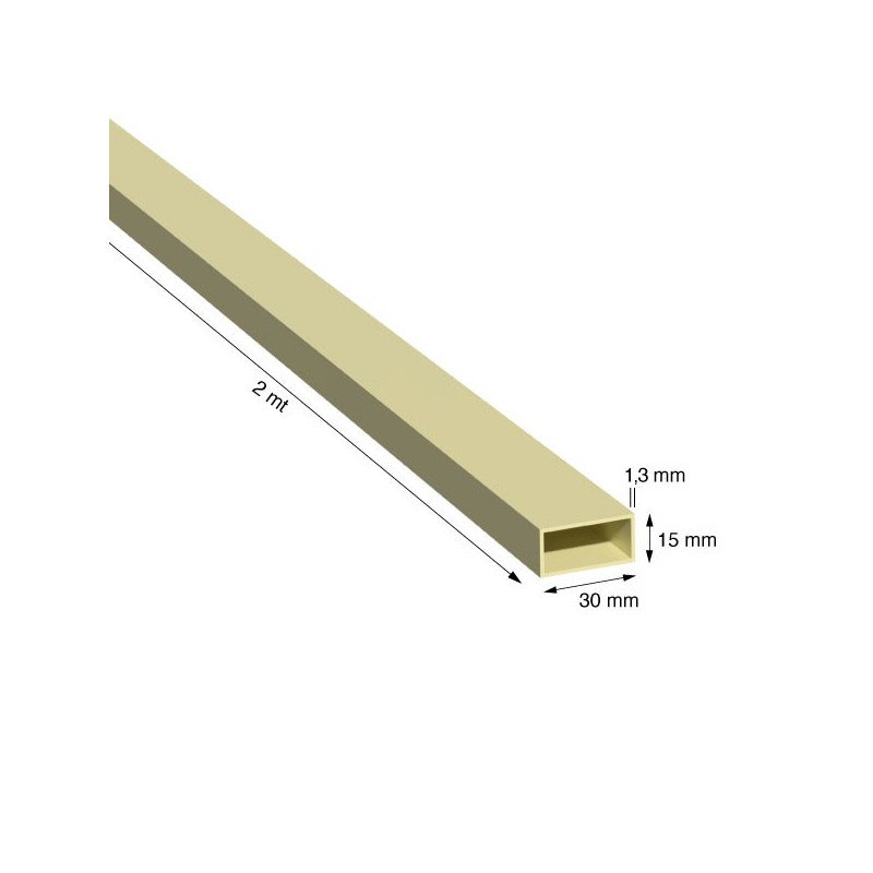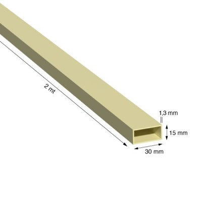 TUBO RETTANGOLO IN ALLUMINIO, LEGA 6060/T5, MISURA 30x15x1,3 mm, FINITURA ANODIZZATA COLOR ORO, LUNGHEZZA PROFILO METRI 2