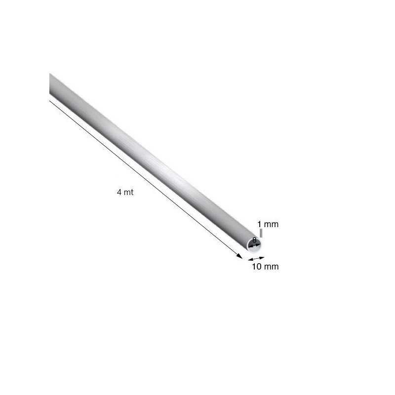 TUBO TONDO IN ALLUMINIO, LEGA 6060/T5, MISURA 10x1,0 mm, FINITURA GREZZA, LUNGHEZZA PROFILO METRI 4