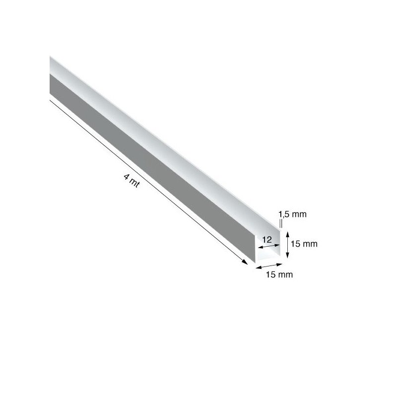 PROFILO A U IN ALLUMINIO, LEGA 6060/T5, MISURA 15x15x1,5 mm, FINITURA VERNICIATA BIANCO RAL 9010, LUNGHEZZA PROFILO METRI 4