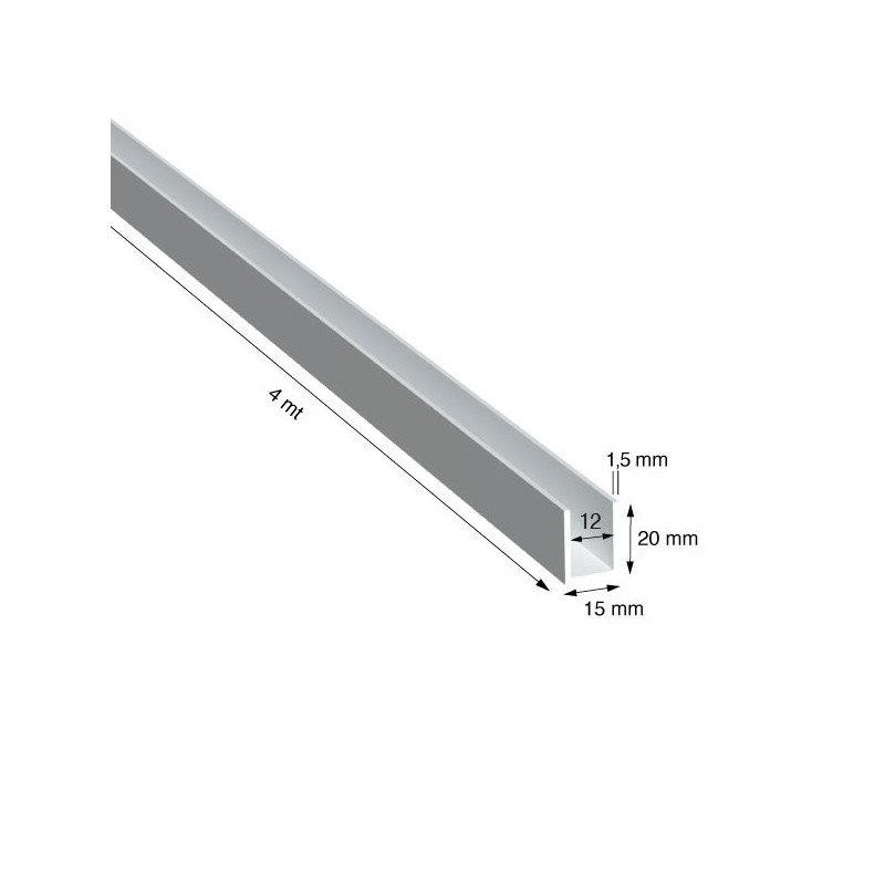 PROFILO A U IN ALLUMINIO, LEGA 6060/T5, MISURA 15x20x1,5 mm, FINITURA VERNICIATA BIANCO RAL 9010, LUNGHEZZA PROFILO METRI 4