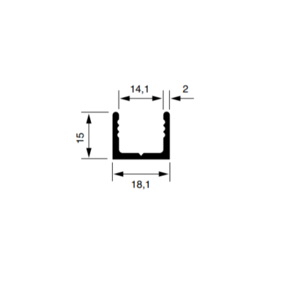 PROFILO A U IN ALLUMINIO, LEGA 6060/T5, MISURA 18,1x15x2,0 mm, FINITURA ANODIZZATA COLOR ARGENTO, LUNGHEZZA PROFILO METRI 2