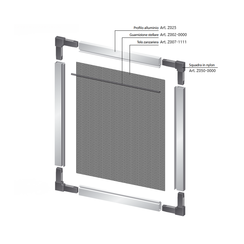 PROFILO PER ZANZARIERE IN ALLUMINIO, LEGA 6060/T5, MISURA 25,5x17,5 mm, FINITURA ANODIZZATA COLOR ARGENTO, LUNGHEZZA PROFILO METRI 2
